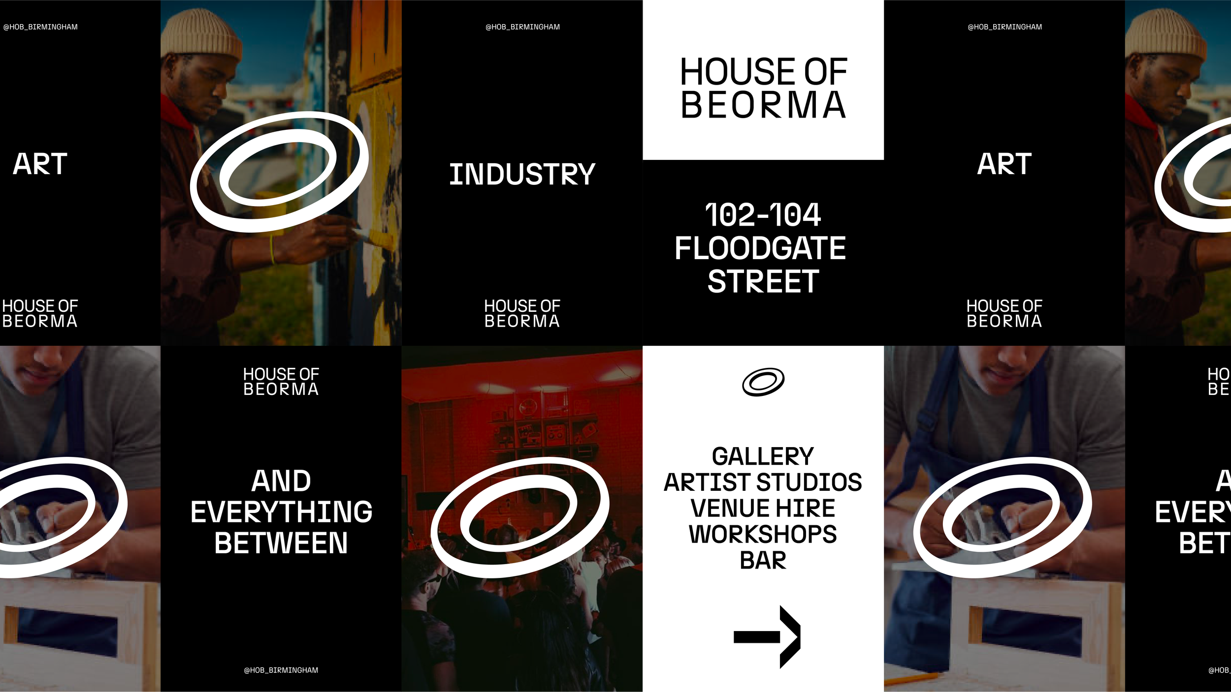 Brand Identity for a new creative venue in Digbeth, Birmingham. The logo pays homage to the building's industrial roots. The stainless steel washers created by former tenants W.J.Wild symbolises the small but vital role individual creators play in a larger ecosystem. The name Beorma honors Birmingham's founding settlers, who laid the foundations for a city grounded in 'Art & Industry.' House of Beorma builds upon this heritage.